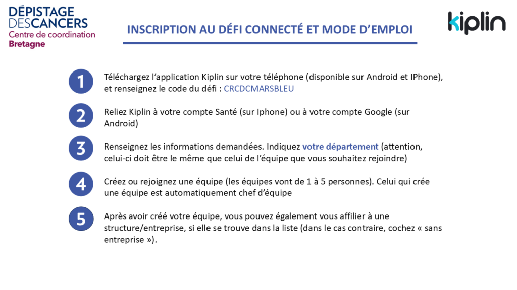 C’est un défi connecté amusant et sportif, ouvert à tous, gratuit et organisé par le Centre Régional de Coordination de Dépistage des Cancers en Bretagne (CRCDC Bretagne), en partenariat avec 10 autres CRCDC en France.